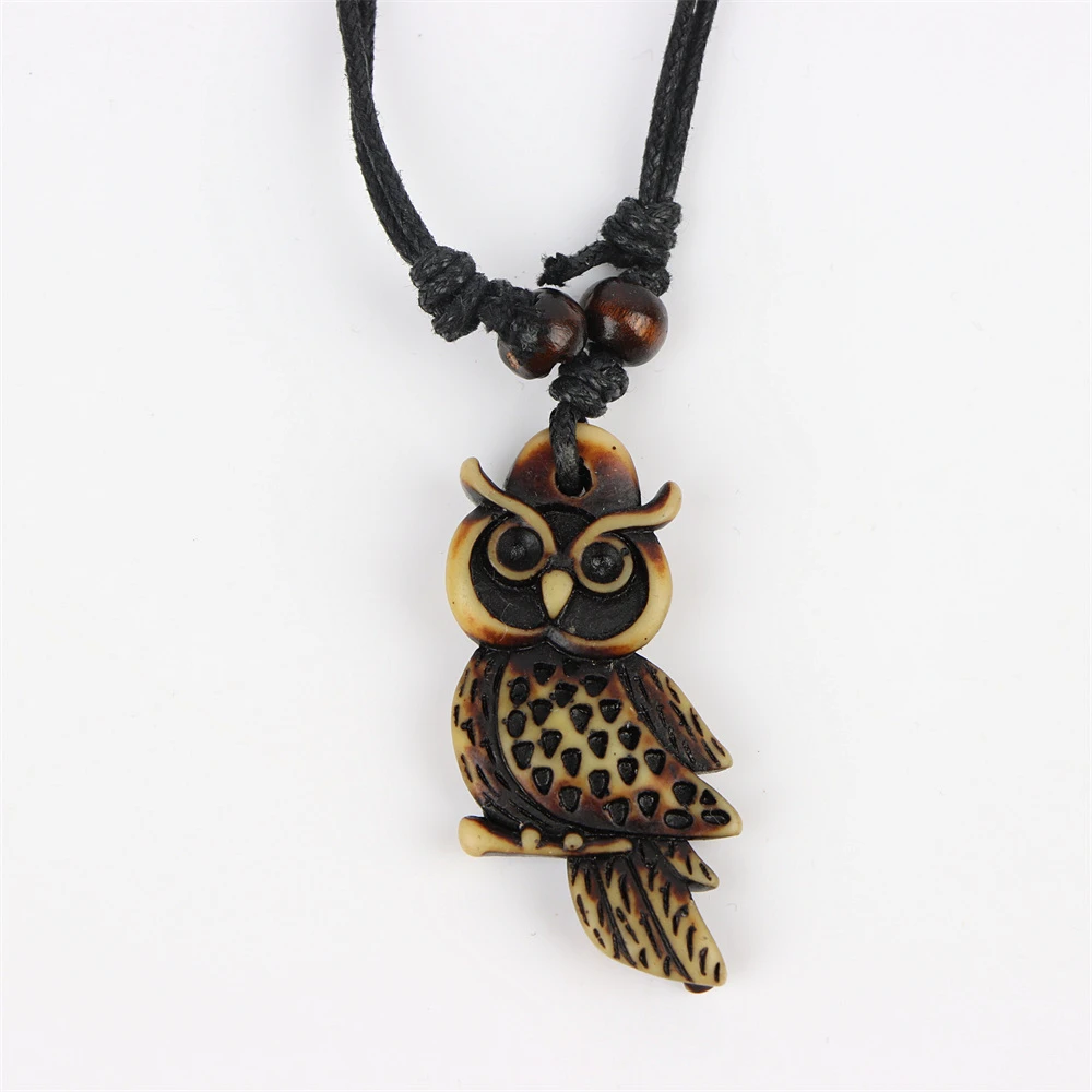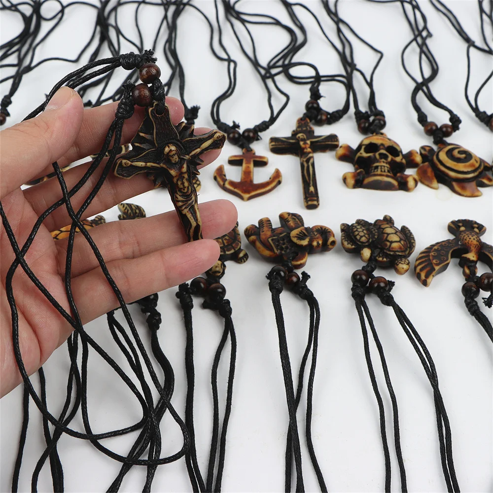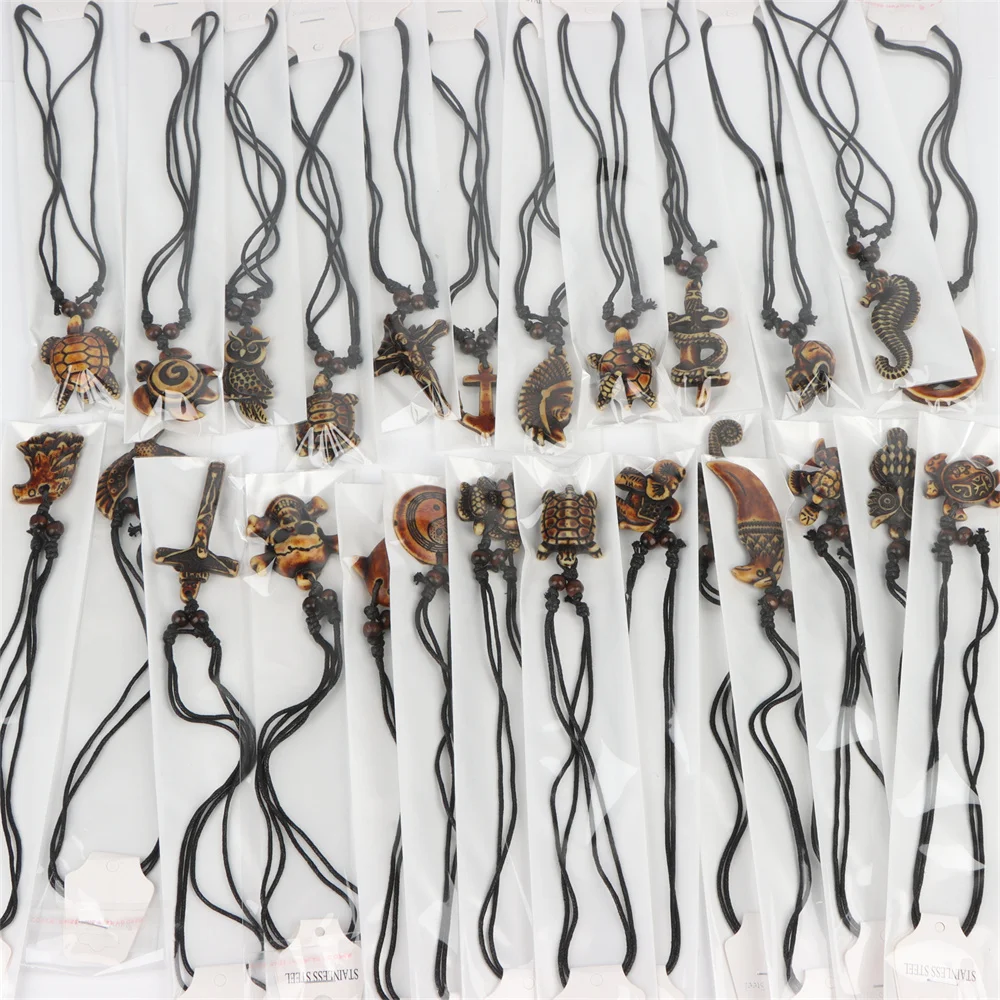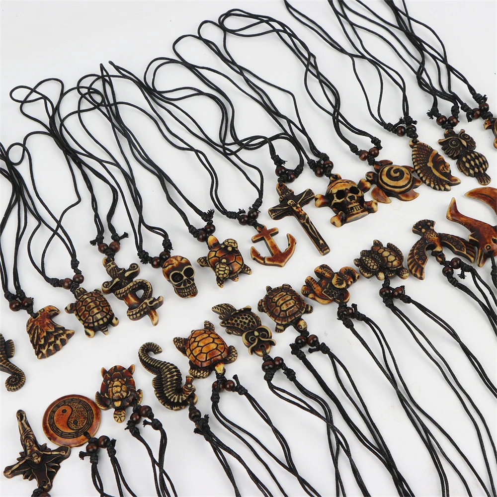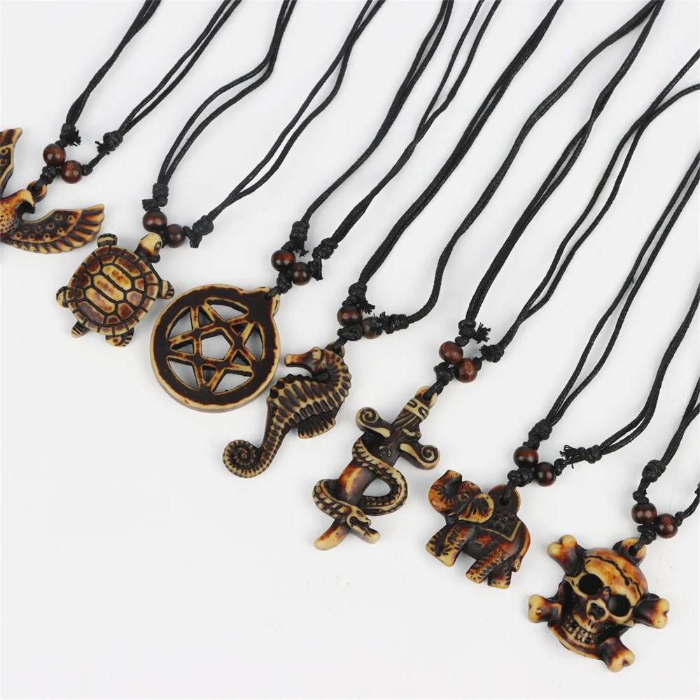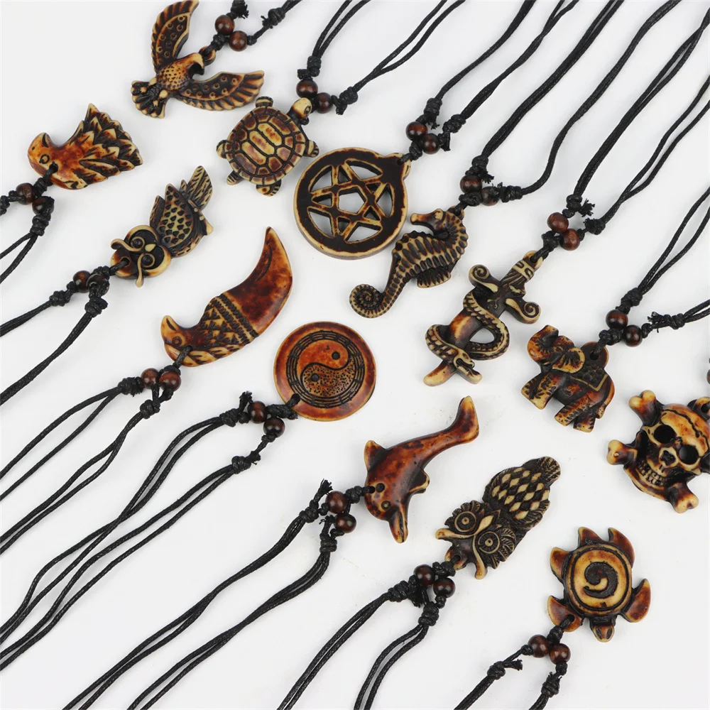 10Pcs/Lot New Vintage Turtle Elephant Owl Skull Adjustable Wooden Necklace Men Women Rope Chain Jewelry Clothes Accessories Gift