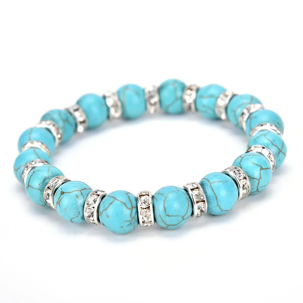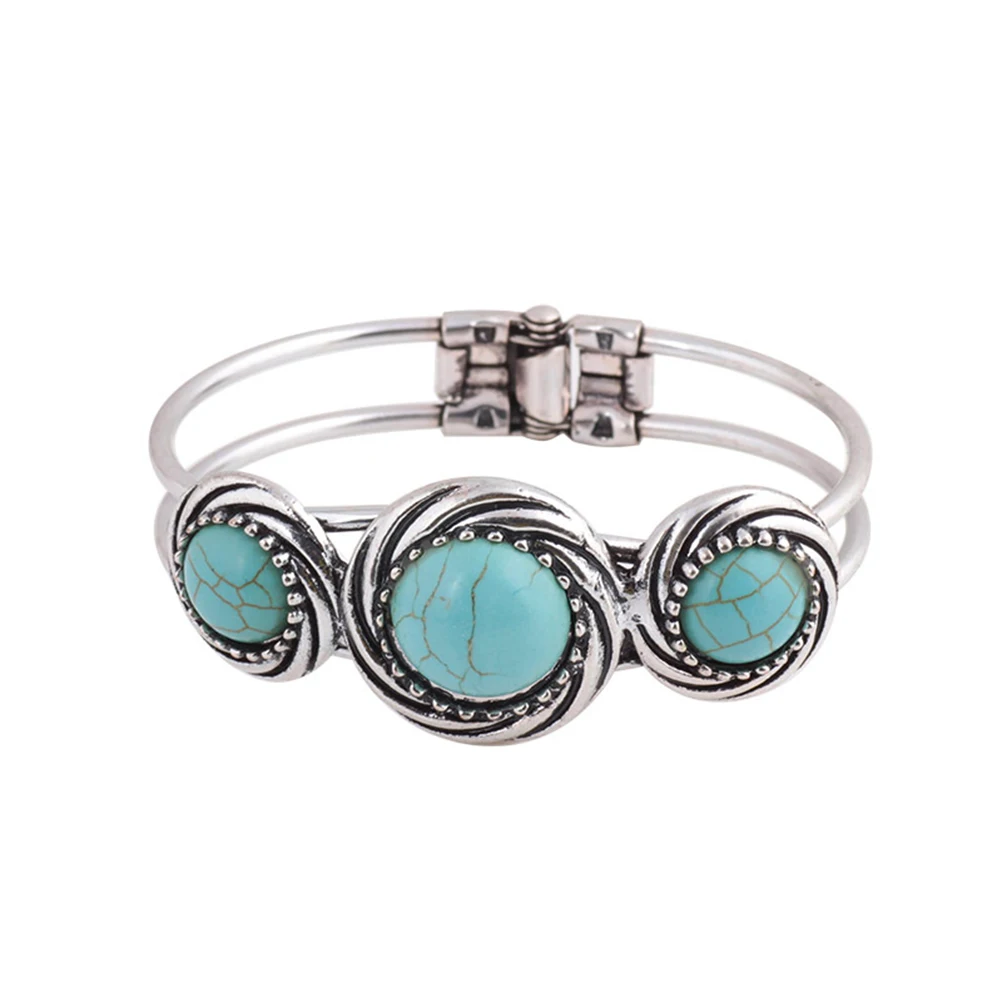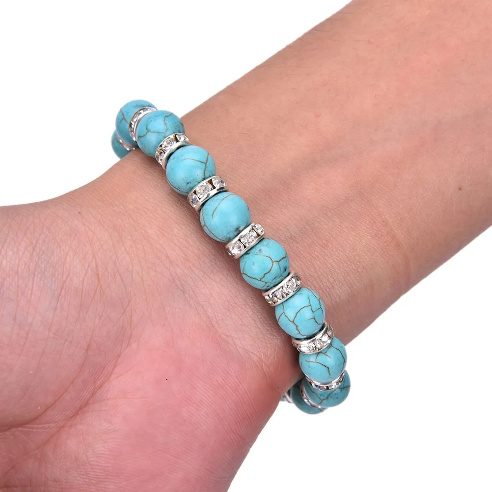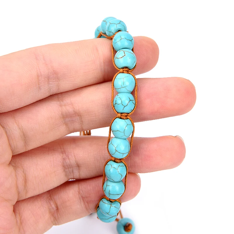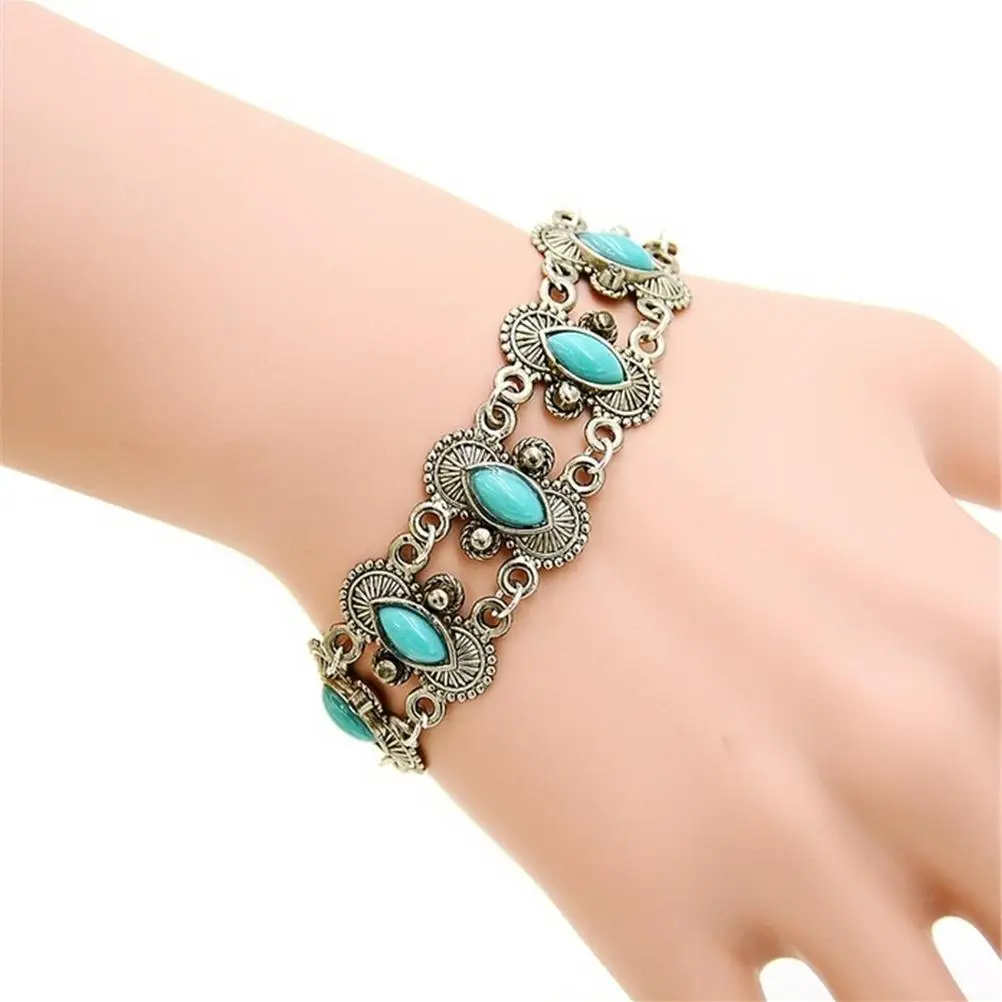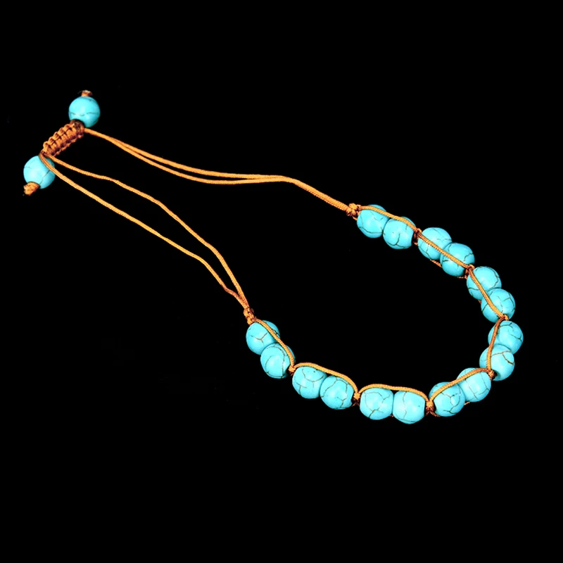 1PC Women Turquoises Wrap Bracelet Southwestern Style Mens Beaded Bracelets Tibetan Silver Clasp Gift For Him Boho Jewelry