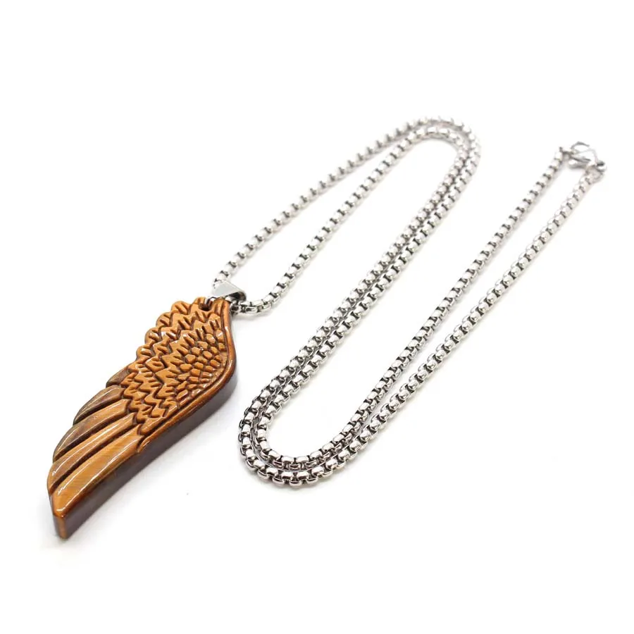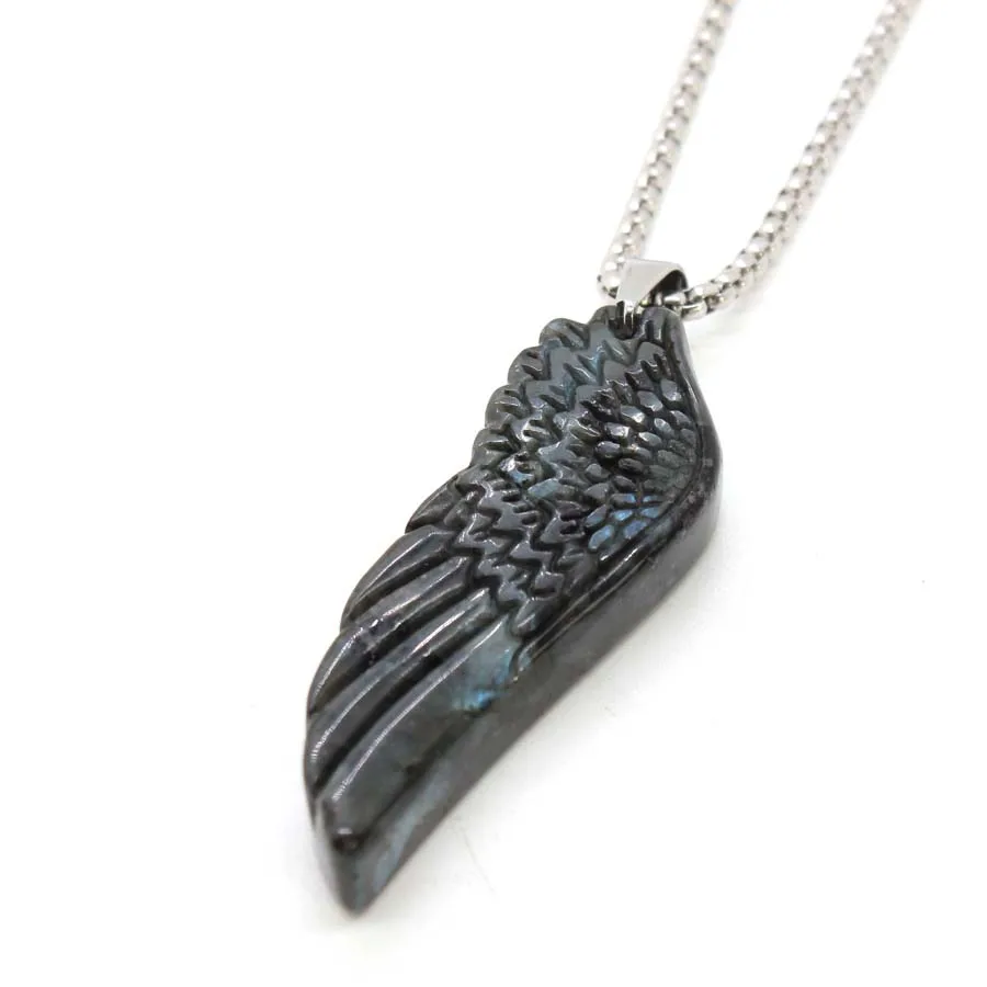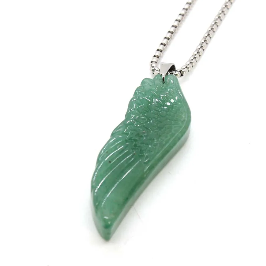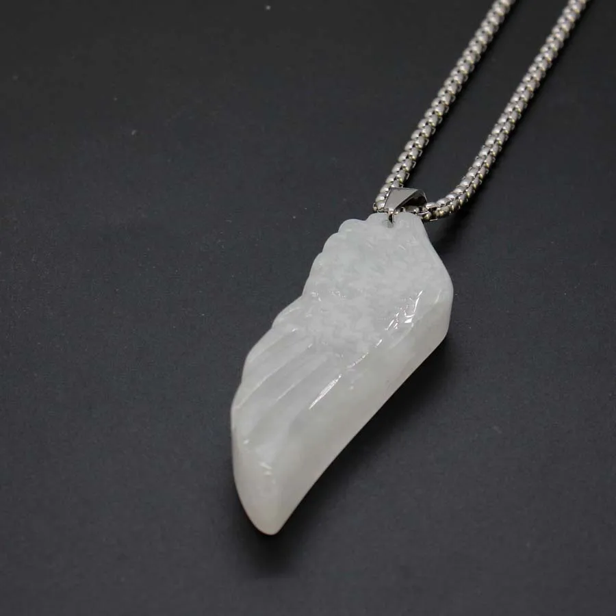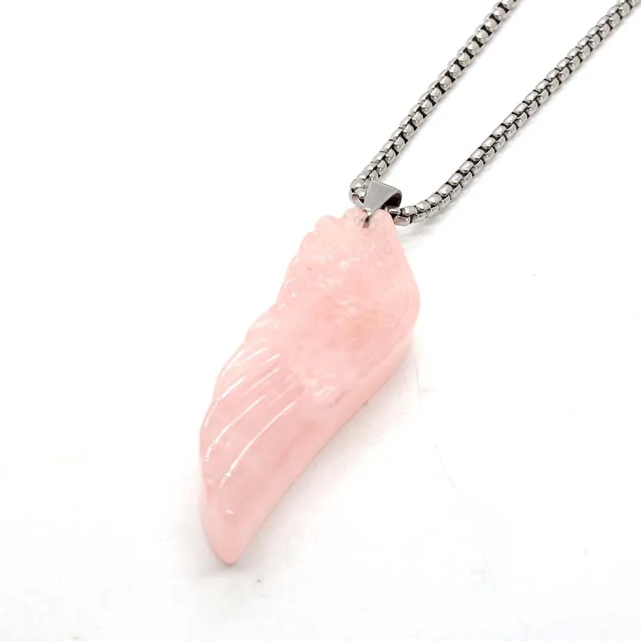 Handmade Carved Crystal Stone Angel Wings Pendant Necklace For Women Natural Amethyst Tiger Eye Stone Pendants Man Jewellery