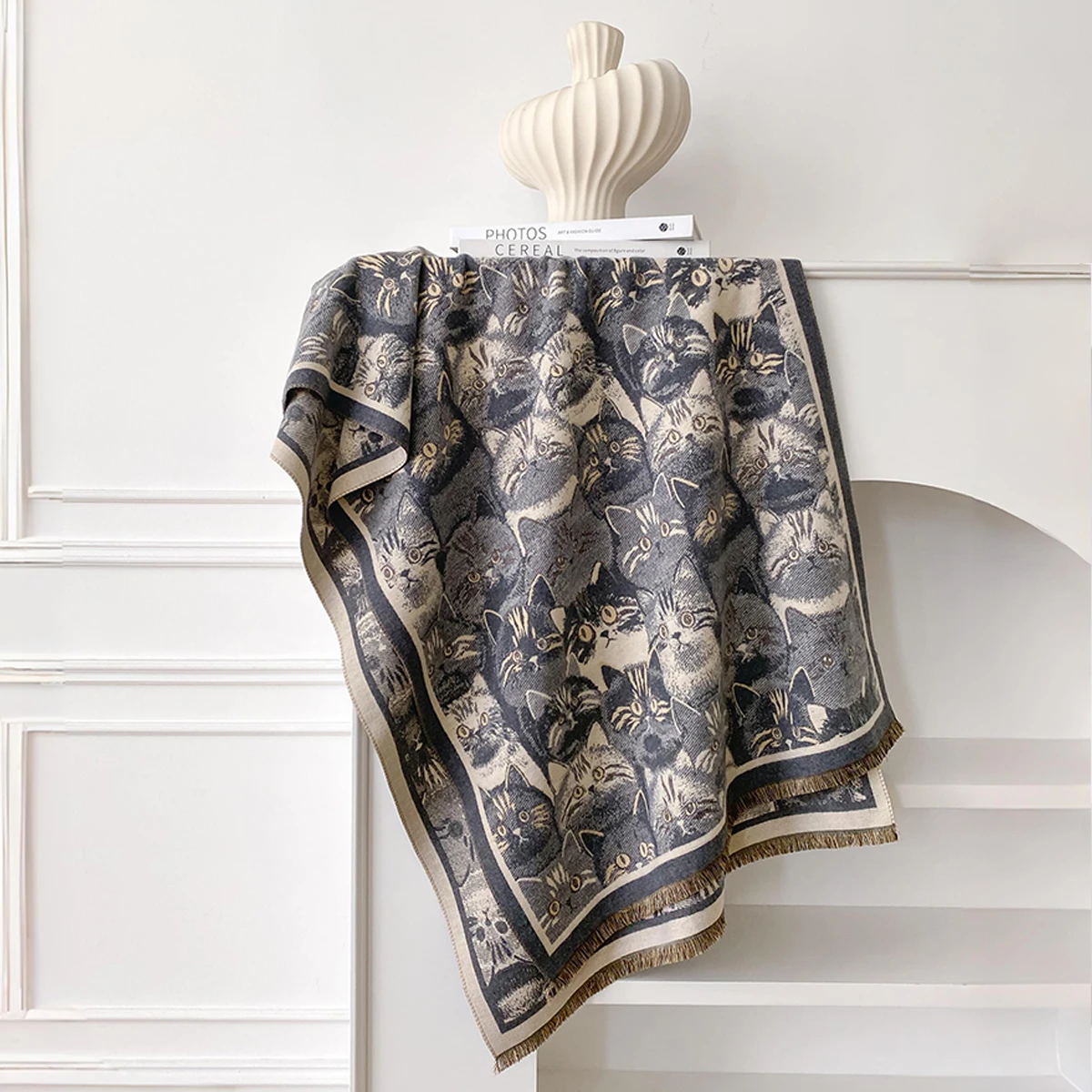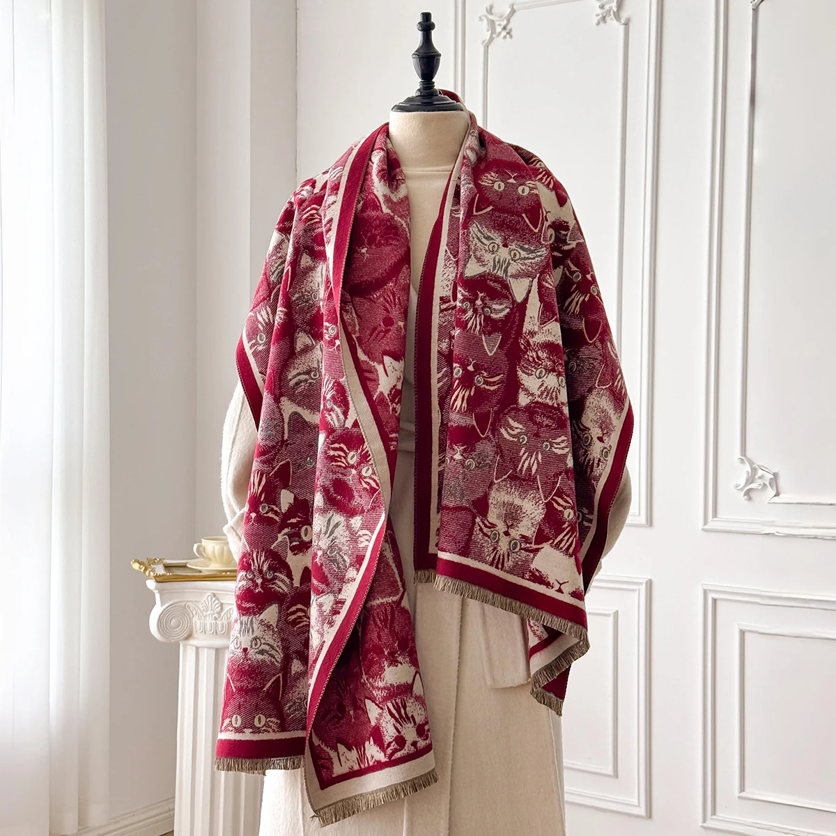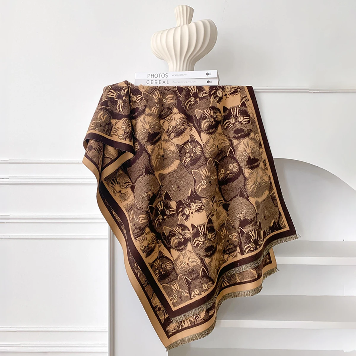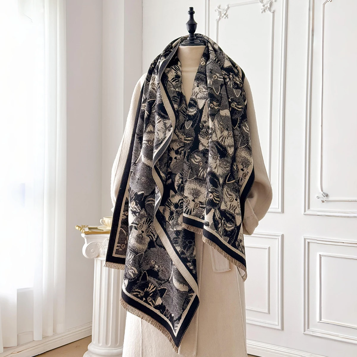 Luxury Winter Women's Imitation Cashmere Shawl Thick Warm Cat Print Jacquard Scarves Two-Sided Pashmina Wrap Ladies Brand Scarf