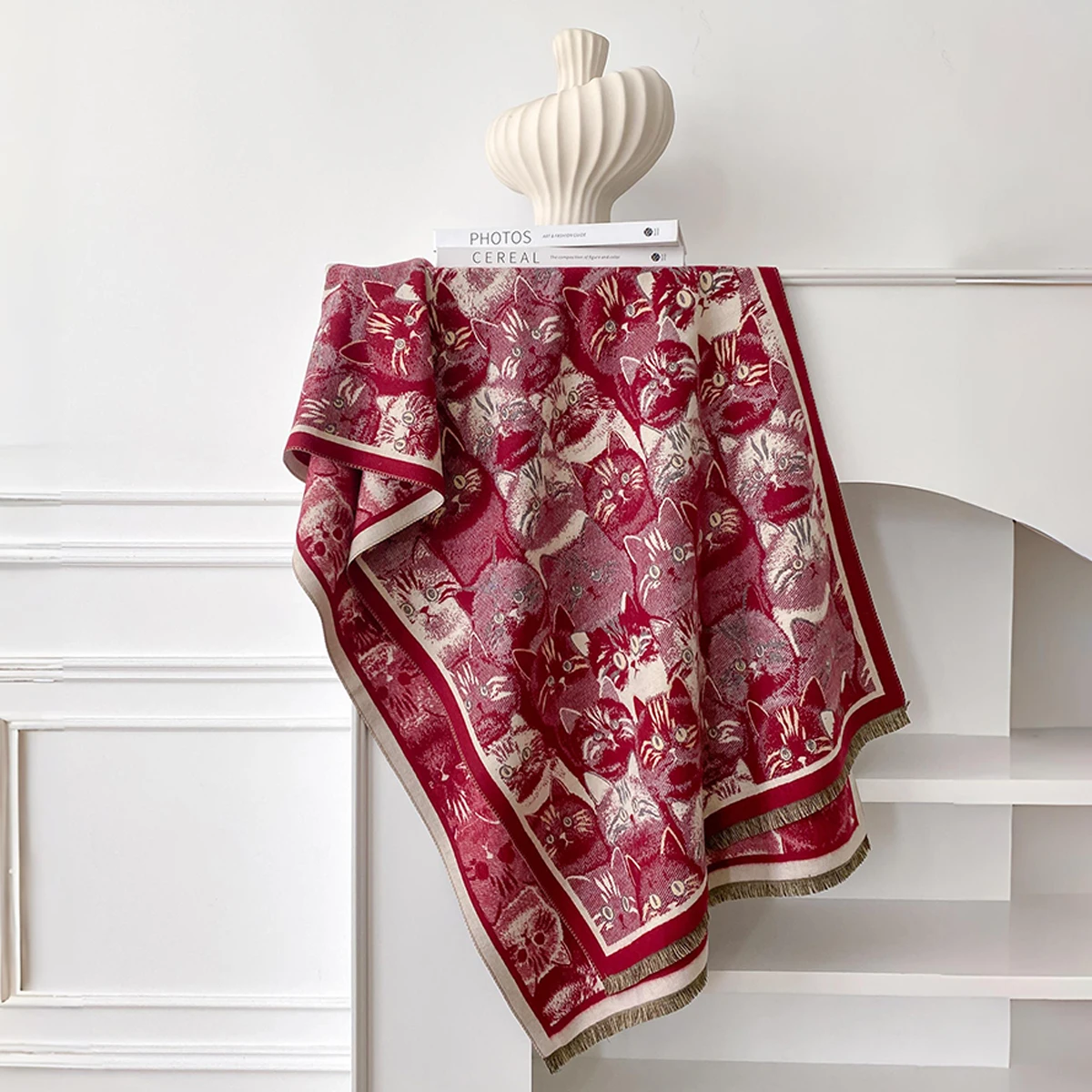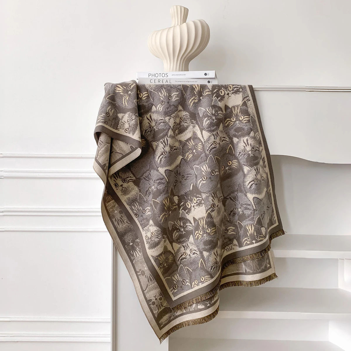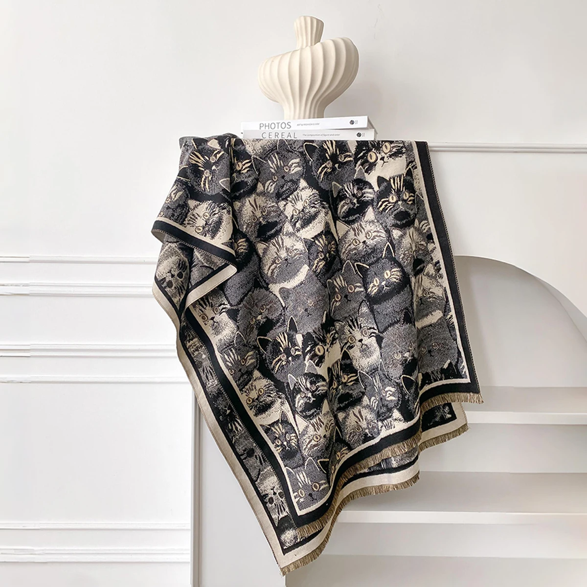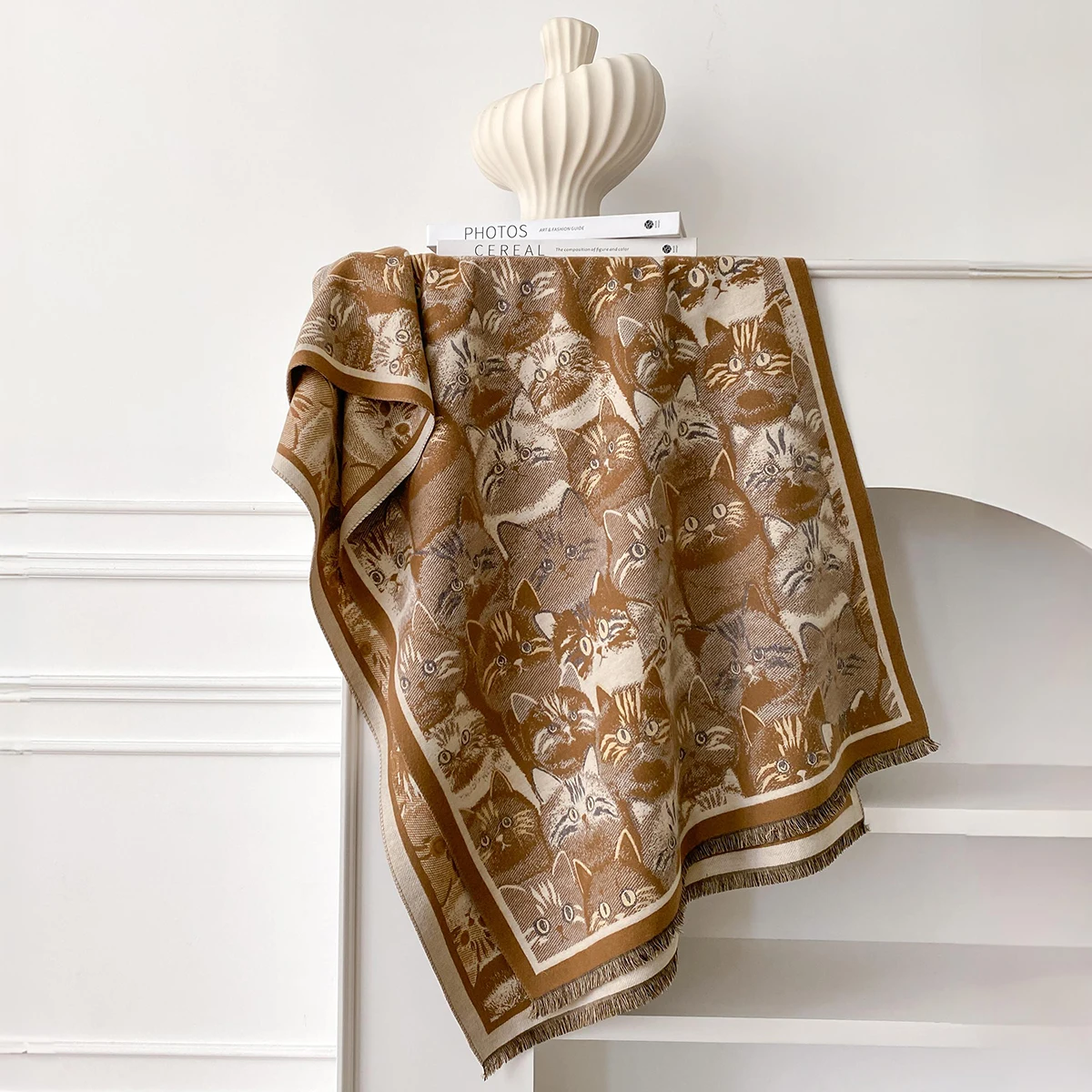 Luxury Winter Women's Imitation Cashmere Shawl Thick Warm Cat Print Jacquard Scarves Two-Sided Pashmina Wrap Ladies Brand Scarf