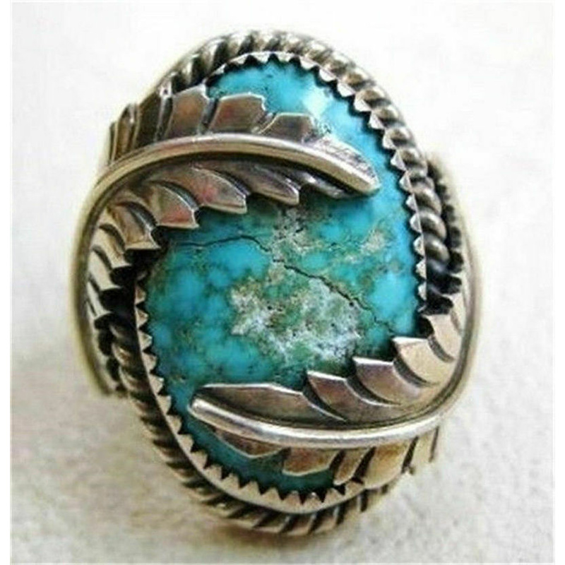 Antique Silver Imitation Turquoise Zircon Feather Wedding Jewelry Ring Size 6-10