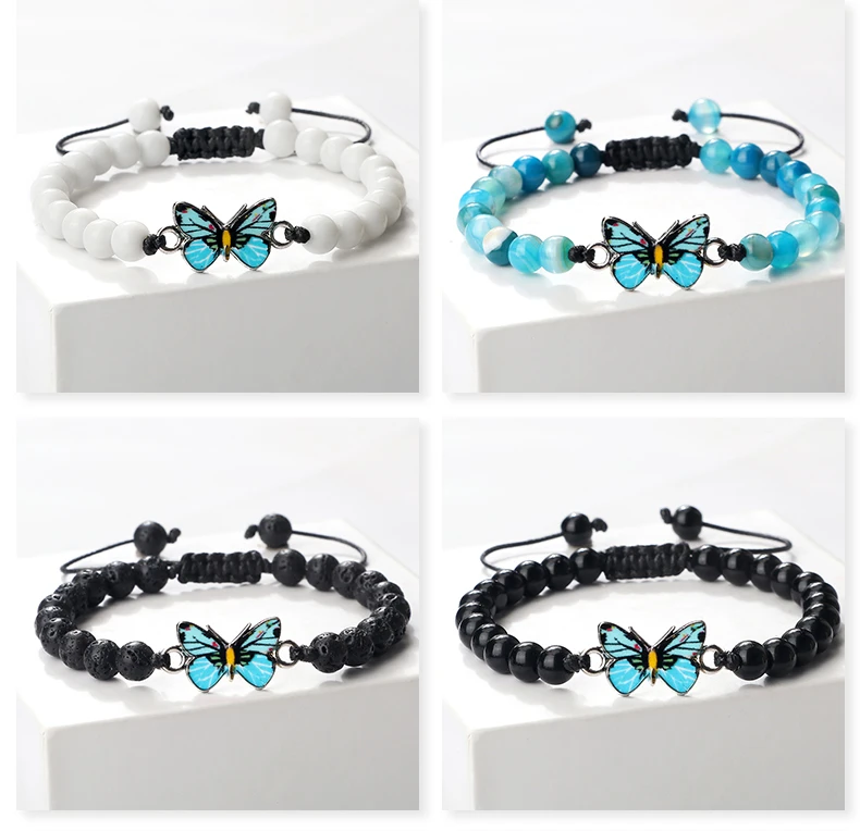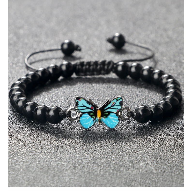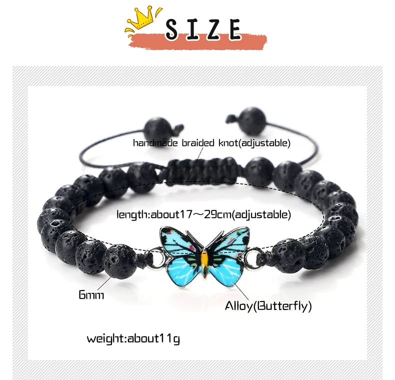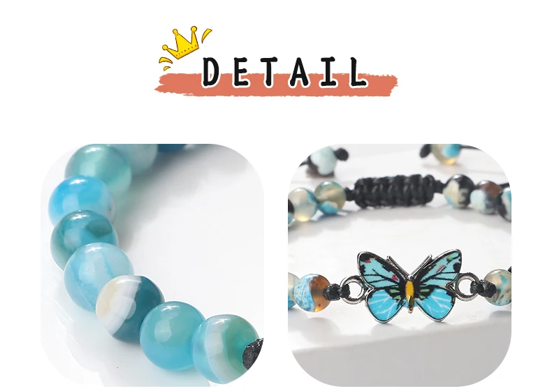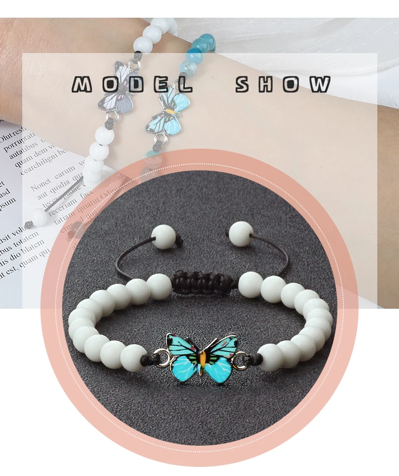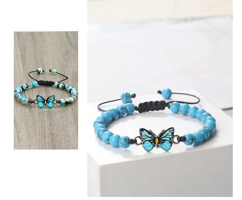 Blue Butterfly Fashion Bracelet Beaded Bangles Handmade 6mm Natural Tiger Eyes Stone Agates For Women Healing Adjustable Jewelry