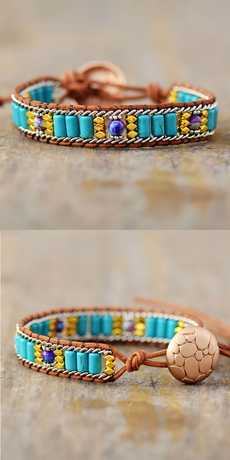 Latest Bohemian Wrap Bracelet Turquoises Chain Weaving Statement Wristband Bracelet Teengirls Jewelry Gifts for Women